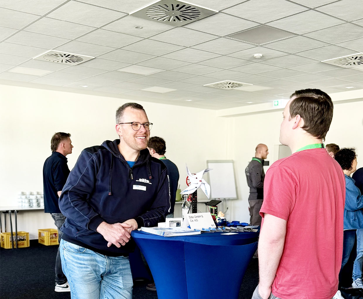 Rund neun regionale Firmen und 24 Meisterschüler nutzten die Veranstaltung, um in kurzen, strukturierten Gesprächsformaten erste persönliche Kontakte zu knüpfen. Nach einer kompakten Vorstellungsrunde der Betriebe folgten mehrere Gesprächsphasen im Rotationsprinzip, in denen konkrete Fragen zu Tätigkeitsfeldern, Einstiegsmöglichkeiten und Unternehmensprofilen im Mittelpunkt standen.